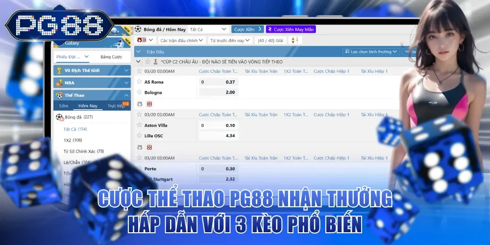 Cá cược thể thao PG88 nhận thưởng xanh chín với 3 kèo phổ biến